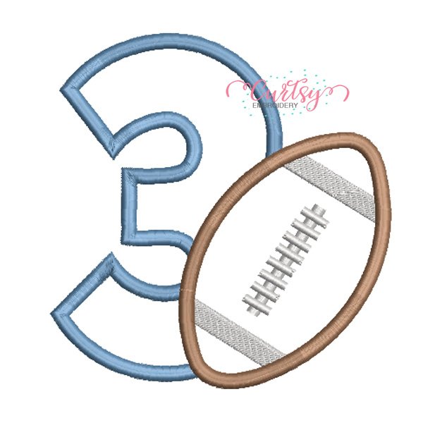 Third Birthday Football Applique Embroidery File | 3rd Birthday Shirt Design