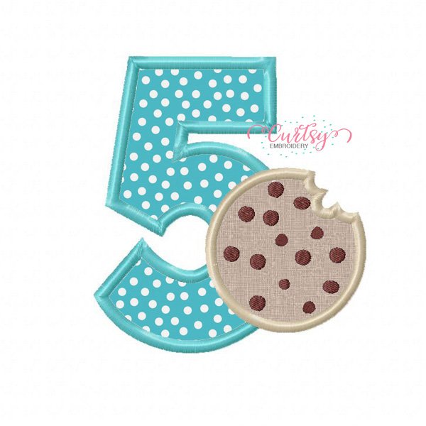 5th Birthday Chocolate Chip Cookie Machine Embroidery Applique Design