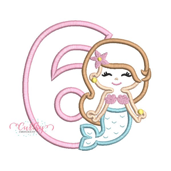 6th Birthday Cute Mermaid Embroidery Applique Design
