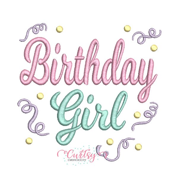 Celebrate her special day with this sweet Birthday Girl embroidery file featuring playful confetti accents and soft script lettering. This design stitches beautifully on birthday shirts, boutique clothing, party outfits, and handmade keepsakes.