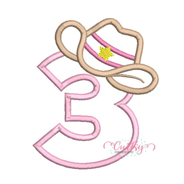 3rd Birthday Cowgirl Hat Applique Design