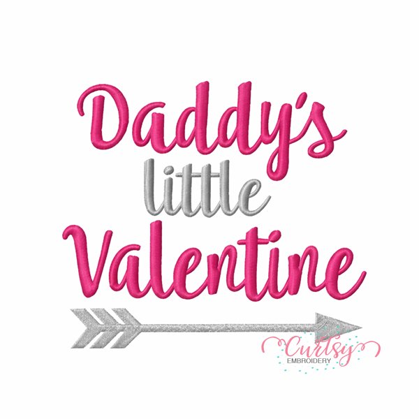 Sweet “Daddy’s Little Valentine” embroidery design, perfect for baby bodysuits, kids shirts, and handmade Valentine outfits with a classic, timeless look.