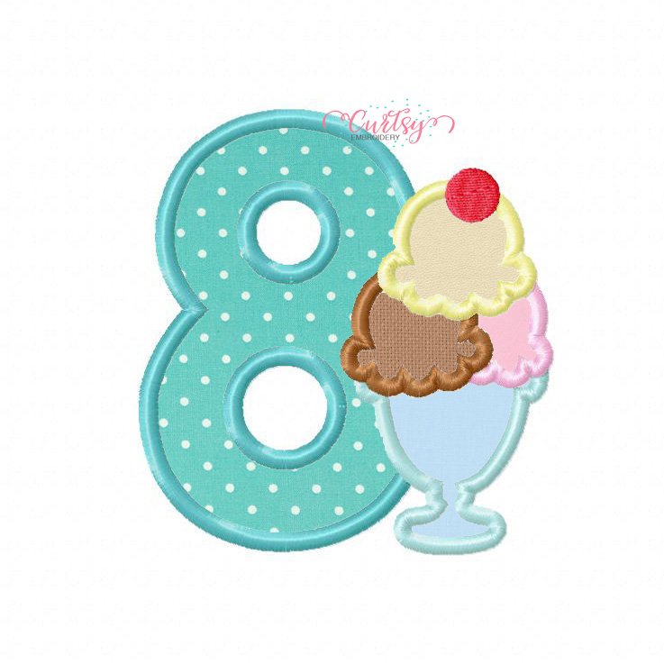 Eighth Birthday Ice Cream Sundae Applique Embroidery Design