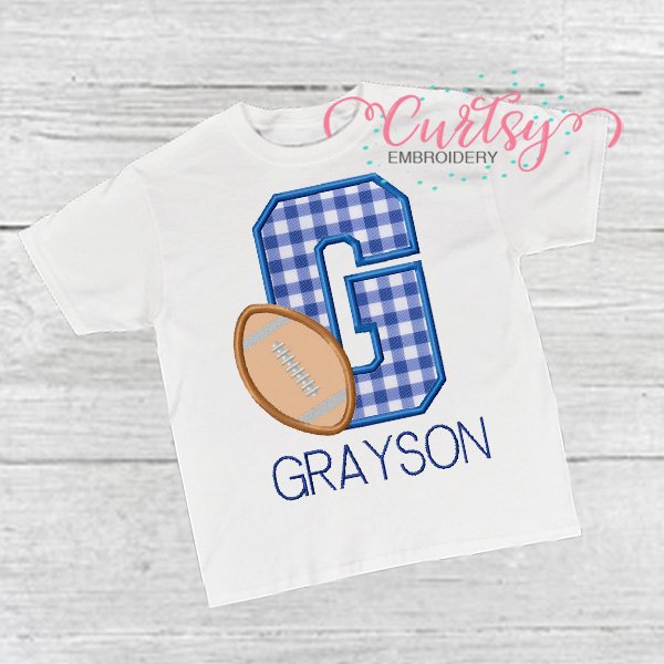 Tags: applique design, embroidery design, football applique, football birthday applique, football embroidery, letter g monogram, machine embroidery, monogram football applique design, monogram football embroidery design, sports applique design, sports embroidery design