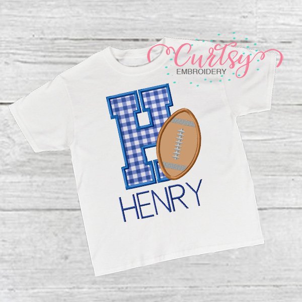 Tags: applique design, embroidery design, football applique, football birthday applique, football embroidery, letter h monogram, machine embroidery, monogram football applique design, monogram football embroidery design, sports applique design, sports embroidery design