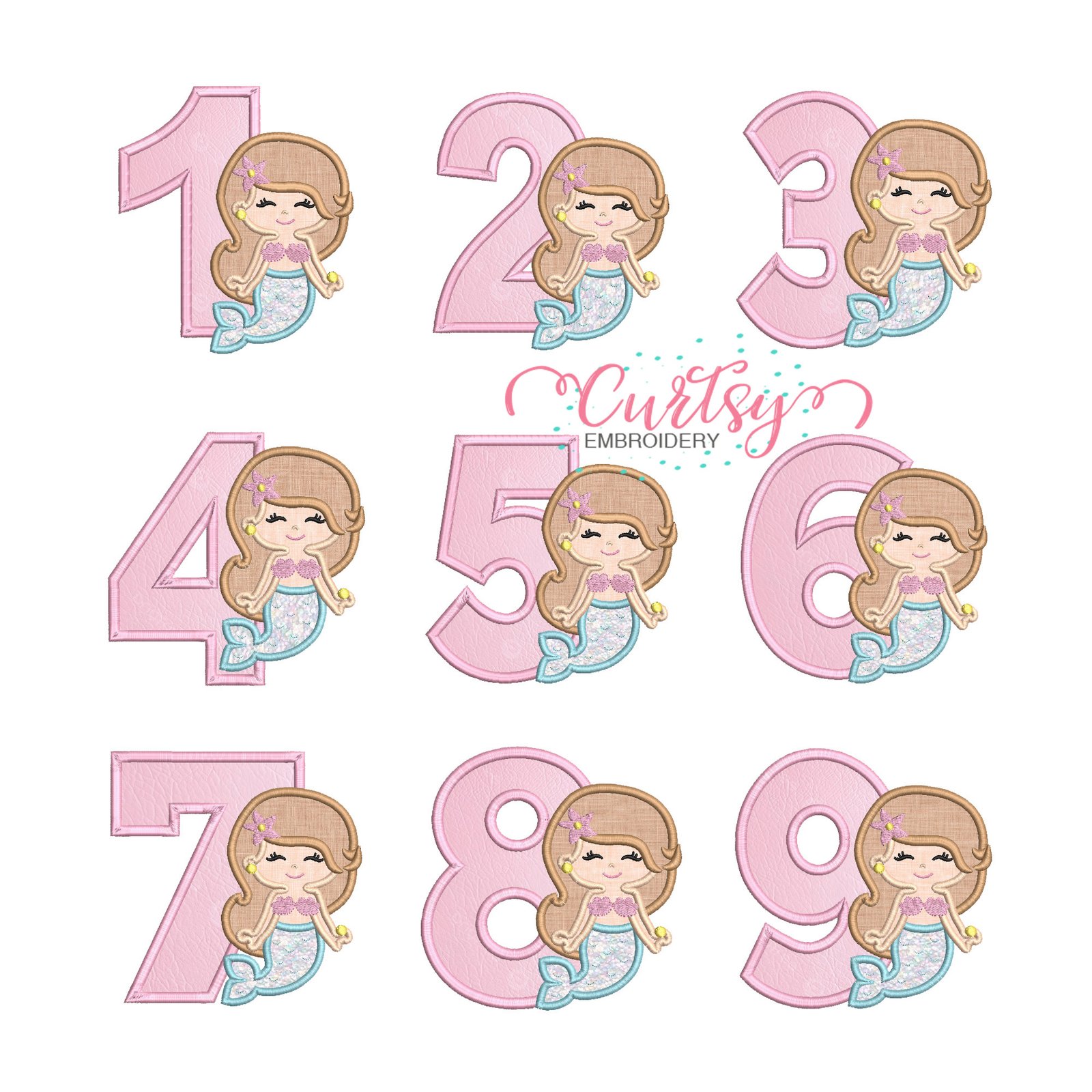 Create adorable mermaid birthday outfits with this mermaid birthday applique embroidery design set. Perfect for first birthday shirts, under the sea parties, and boutique children’s clothing.